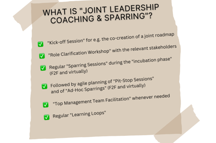 In order to avoid problems to occur only then, it is good practice for "Joint Leadership Teams" to have external sparring partners along the process: Before starting, while collaborating (to continuously calibrate and learn) and at the end to secure lessons learned for themselves and for their organisation.